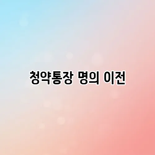 청약통장 명의 이전 절차, 단계별 상세 안내